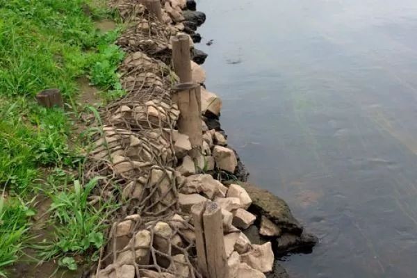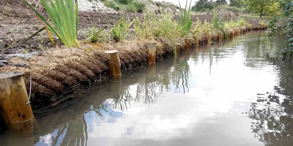 木樁邊柵護岸是在打樁露土的上部再打上木板或麻繩等,既能固土護岸,又能保護邊岸。
