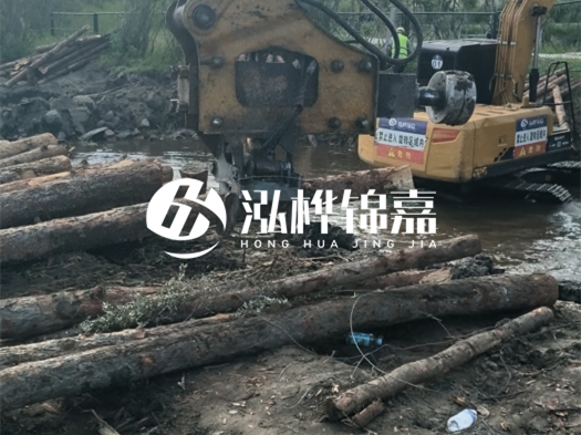 江蘇某河道護岸工程,使用 5 米直徑 10 的松木樁,部分地段地下 2 米處有沙礫層,施工隊采用機械引孔 + 液壓打樁組合: